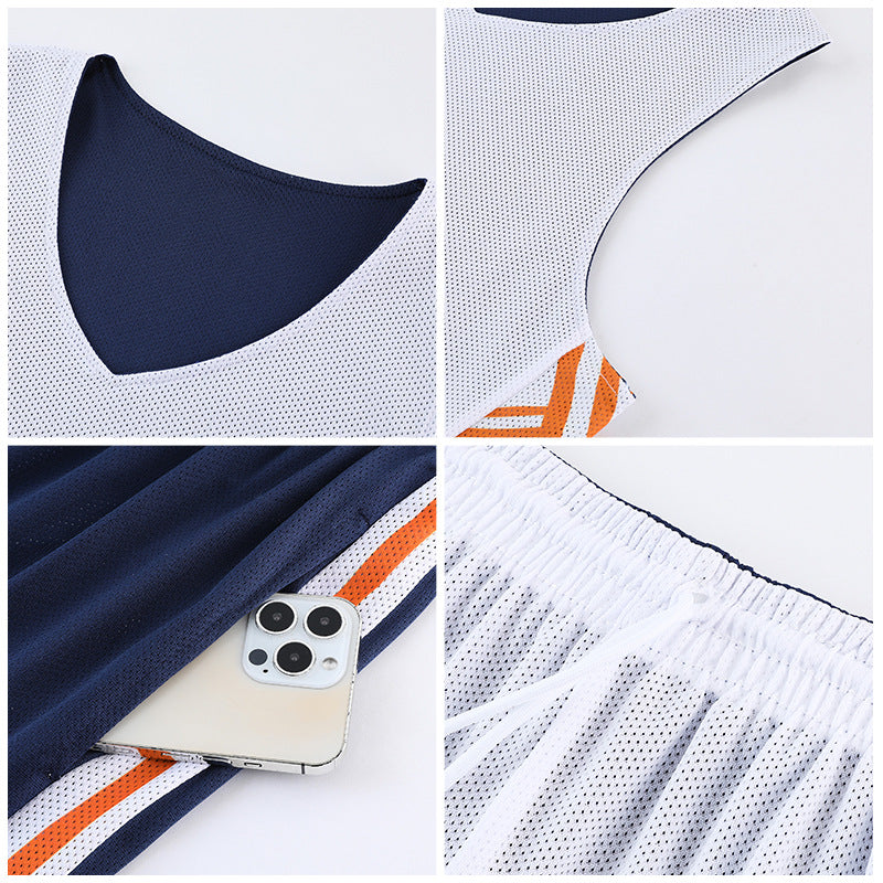 These custom blue white reversible basketball jerseys & shorts are perfect for youth and adult teams. The Jerseys and shorts have a custom logo and are available in bulk orders ensuring a professional uniform for any team. Featuring a comfortable fit and vibrant colors these jerseys will take your team to the next level.